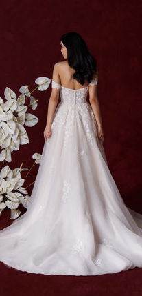 Our collection is thoughtfully designed to complement and celebrate every curve, offering a range of sizes from 18 to 30. With luxurious construction and elegant designs, our dresses provide the ideal fit for your wedding day. Whether in-store or online, we have a variety of styles to suit your taste and budget. Shop our online store for exclusive sale dresses, ready to be shipped promptly. Experience confidence and elegance with our plus size wedding dresses, crafted to make your dream dress a reality.